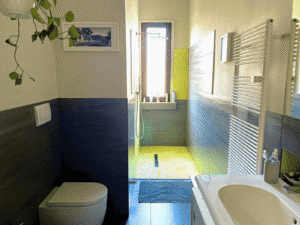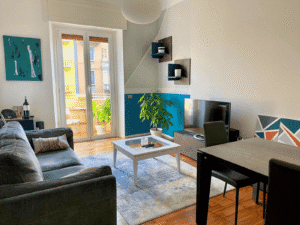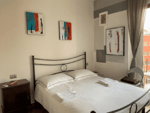 Guest amenities: Nespresso coffee machine, bed linens and courtesy kit, 46″ smart TV, and a selection of books in Italian and English.