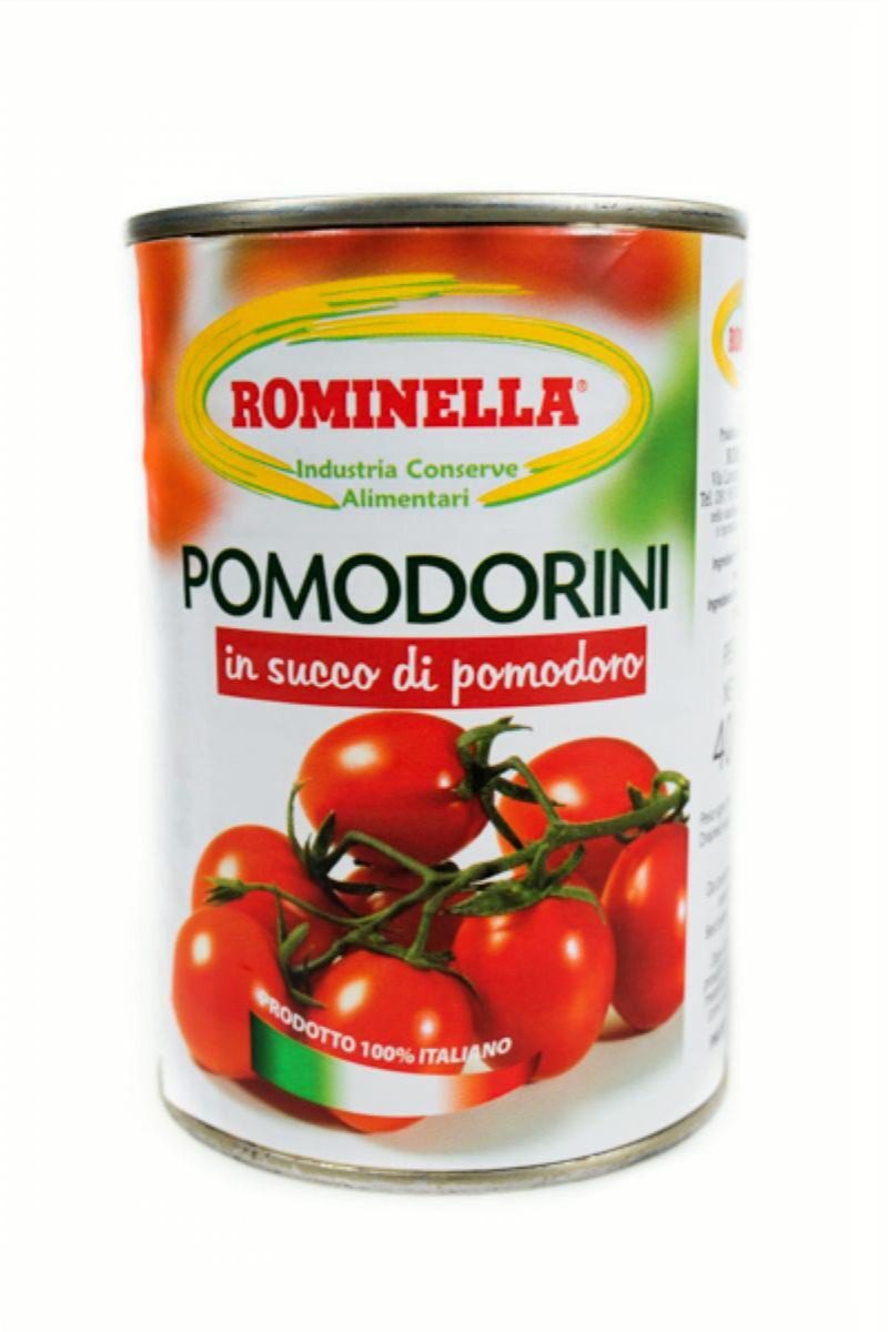 I pomodori pelati Rominella sono realizzati con pomodori selezionati, maturati al sole del Sud, privati della buccia e immersi in un gustoso sugo di pomodoro.